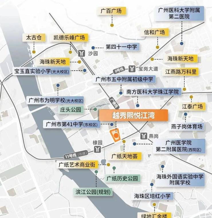 项目100米不到就是开业多年的广纸天地荟,吃喝玩乐一条龙,海珠西这里发展了很多年,街边的小铺、几十年的老店都非常多,在吃的方面完全不用担心,而且广纸314地块还有1000平的商业用地,据悉可能会打造快时尚商业,如果觉得家门口的商业还不够,开个车转个弯就能到乐峰广场、江南西商圈。