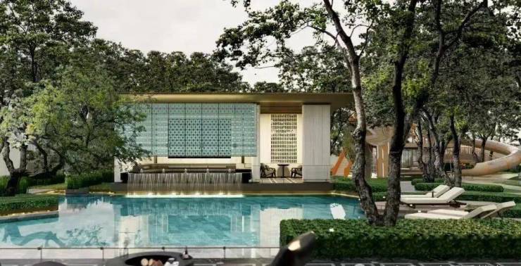 园林景观和儿童玩乐区,也富有广府文化的底蕴,四水归堂,露天泳池,还专门设置了玲珑水榭和别院会客,既考虑到了景观,又兼顾了休憩、社交、互动等功能实用性。