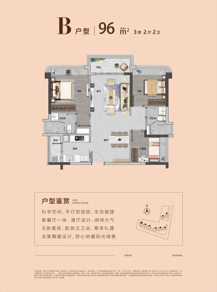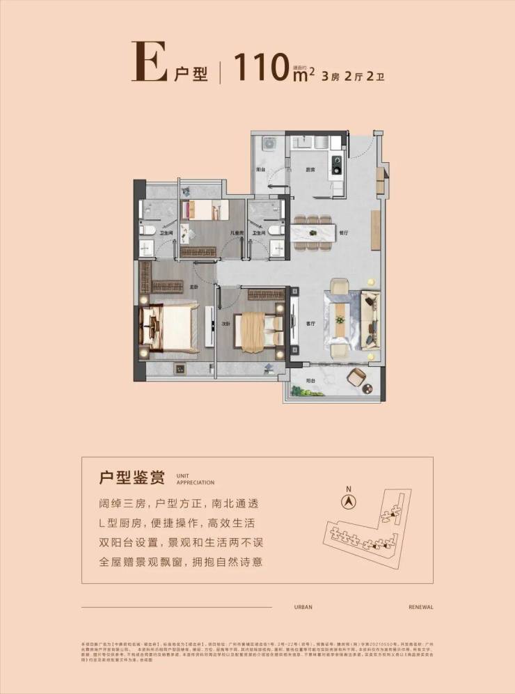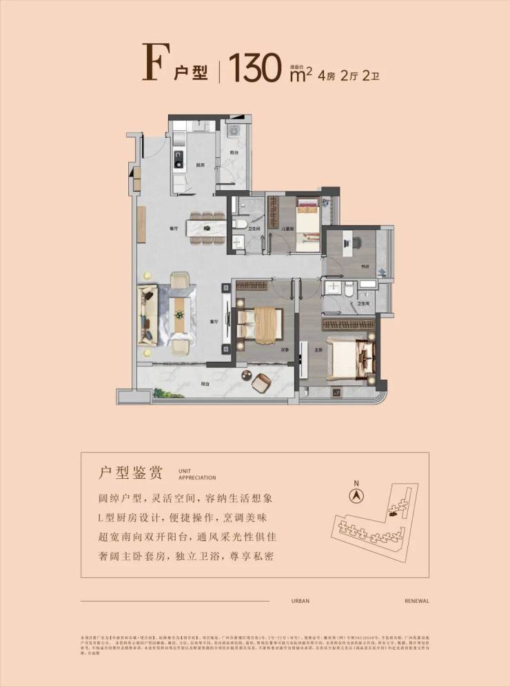 产品建面约86-130㎡三至四房,L型建筑布局,超宽楼距,采光充沛。