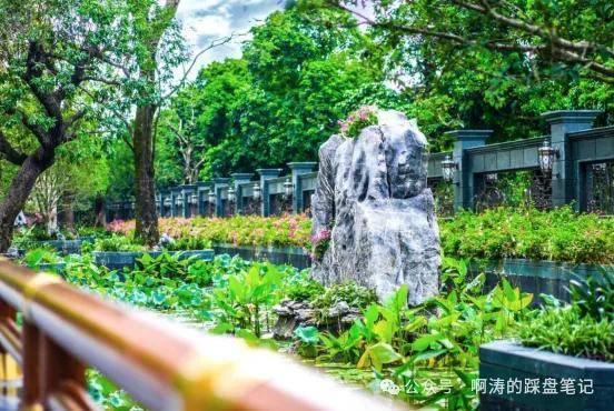 6)叠石造景·百里挑一 以自然山水作为设计蓝本,运用景石与水系浓缩山水之美,体现师法自然的优雅情趣寻遍华南,百里挑一搜罗树形、姿态优美的岭南乔木 翻山越岭,从各地石场多次比对,百里挑一,精选奇特景石