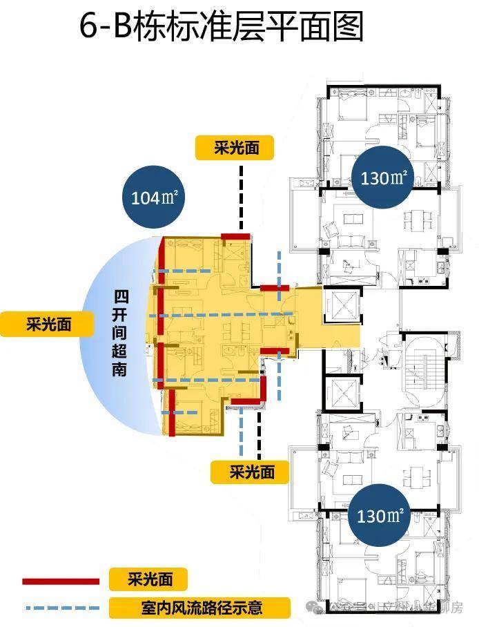 建面约104-168㎡纯改善四房,朝南而居,南北通透,阳光清风常伴,满足品质改善需求。