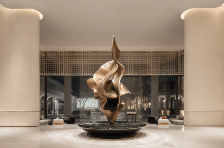 三进院“艺术会所”,是用艺术讲述“珠江传奇”的展厅。国际艺术家约翰・阿特金的《潮涌》立于大厅中央,多座艺术作品镌刻下城市的脉动。