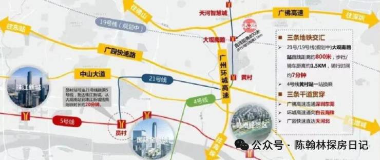 直线距离21号线大观南路站仅800m,4个站可达员村,3个站珠江新城