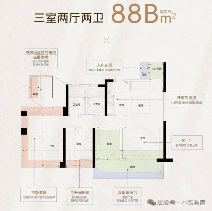 项目更是拿出了14种变异户型,如约77㎡和88㎡,都有A、B设计差异,尽可能满足不同人群的需求。