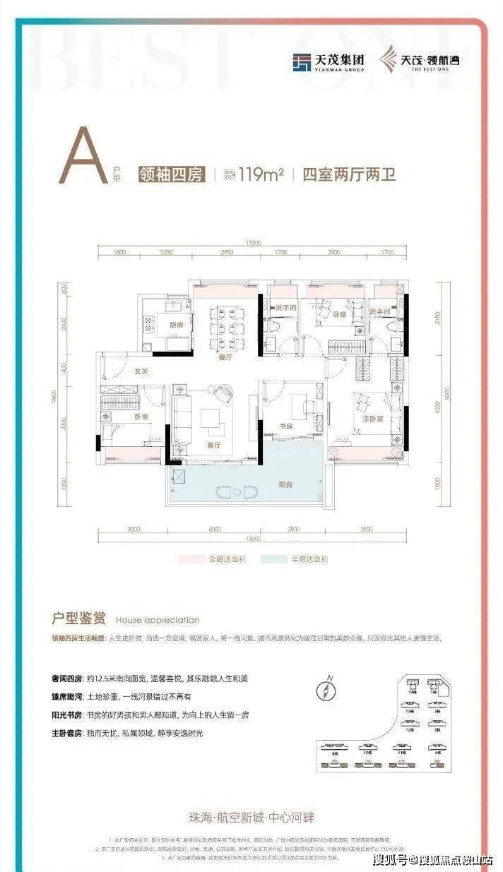 产品上,主推73-119㎡二至四房精装现房,户户南北通透、全明方正,得房率约90%,84-89㎡三房性价比突出,109-119㎡四房适配改善需求,部分户型可瞰河景,搭配全屋飘窗设计,兼顾实用性与舒适度。配套方面,自配公立领航小学与幼儿园,1公里内可达金湾华发商都,3公里内覆盖全龄教育、三甲医疗与多个公园,日常购物、休闲、教育一站式便捷。