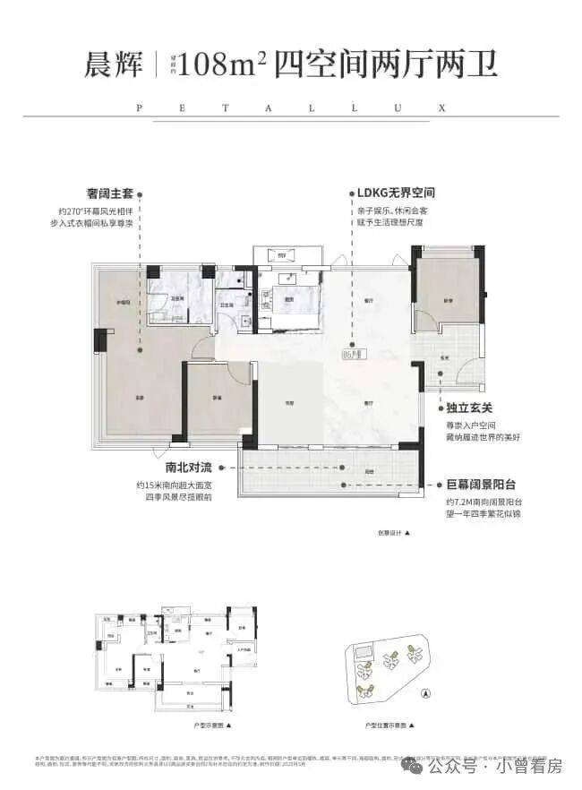 - 108㎡四房两卫:7.2米超大阳台+步入式衣帽间,改善属性更强。