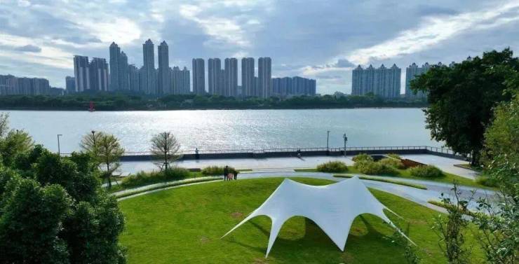 广州地铁和中交城投积极推动项目楼下滨江公园建设进程,并打造了滨江公园示范区,如今,该示范区已成为周边居民享受露营和垂钓等活动的理想之地。