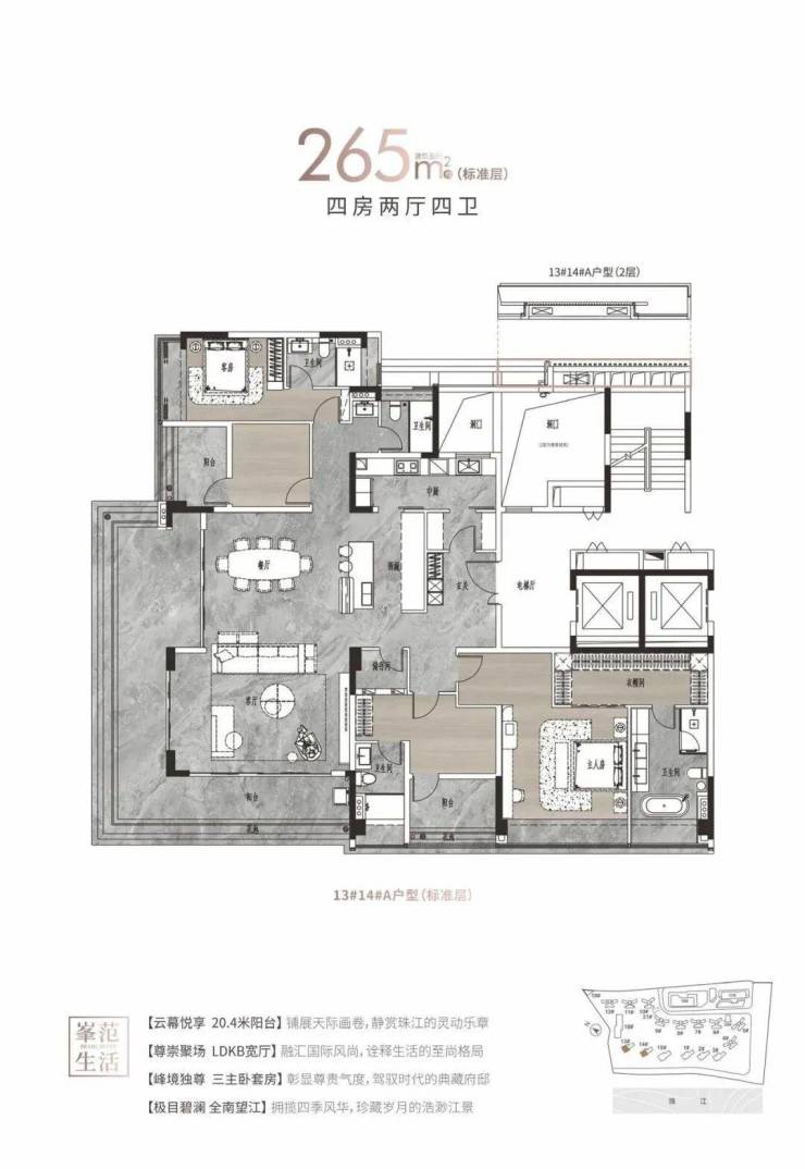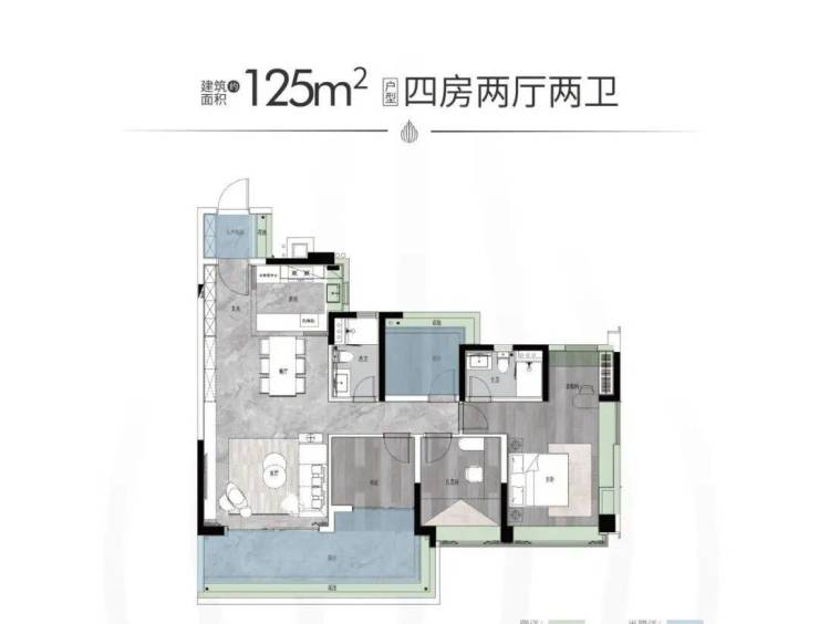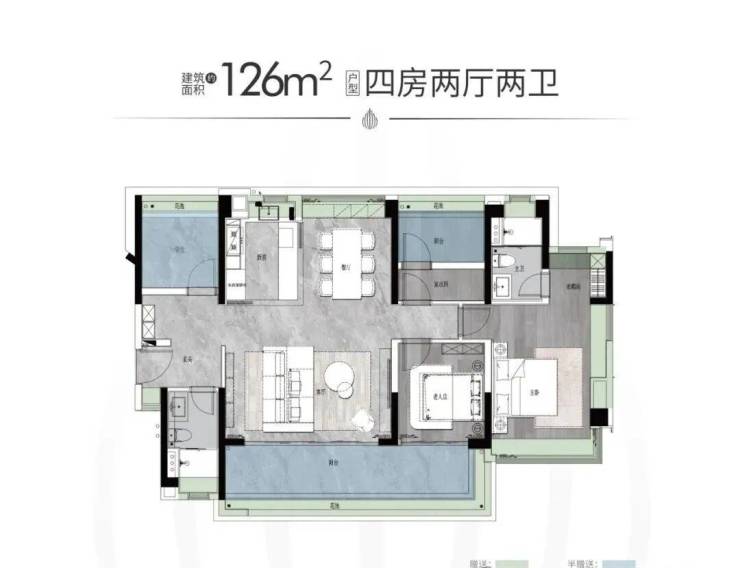 户型面积:约125-142㎡四房两厅两卫/214-313㎡大平层