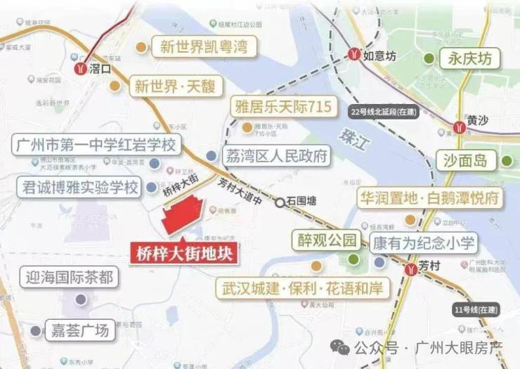荔湾桥梓大街南侧地块位于白鹅潭板块,临近荔湾区府和芳村大道中,与在建11号线石围塘站只有800多米,去天河、海珠都会比较方便。