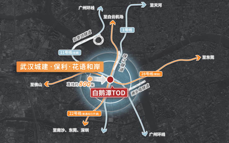 ✔4地铁:约800米白鹅潭站(芳村站)四线合一超级枢纽(1号线已开通,11号线/22号线建设中,28号线规划中),轻松链接全城,未来0换乘直达广州站、广州南站、白云机场等重要交通枢纽。