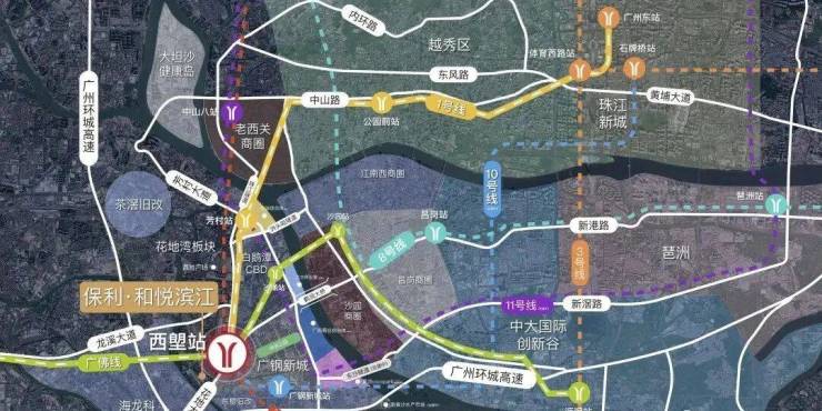项目所处的白鹅潭商圈,交通路网四通八达,总计将有13条轨道汇聚于此,所以保利和悦滨江所享受到的地铁红利,超乎想象。