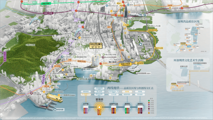 望海玥步行几分钟就可达2号地铁线“东角头站”,2站海上世界,4站后海。预计今年底,13号线二期南延段建成通车,1站地铁直达建设中的深圳歌剧院,3站接驳深圳湾口岸,届时将一线承接港客北上的流量。