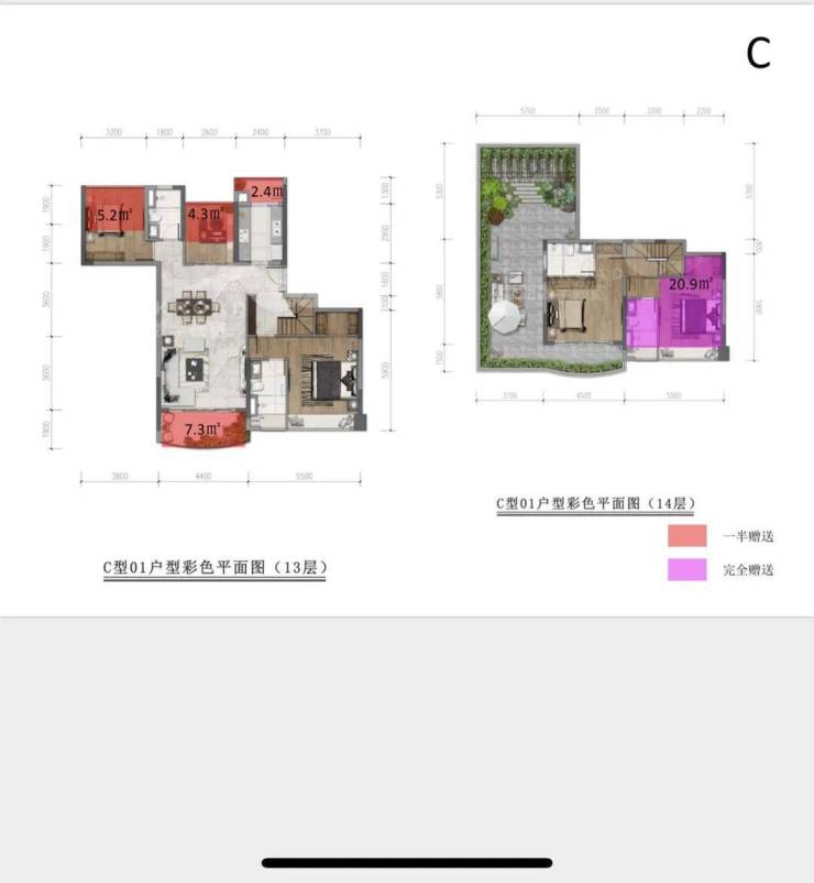 C户型顶楼复式172㎡(三期6栋,10栋)