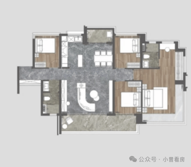 123㎡四房两厅两卫户型,总价约517-523万,采用南北对流双阳台设计,通风效果好,客餐厅空间舒展,主卧套房舒适宽敞,收纳空间充足,适配二胎家庭;