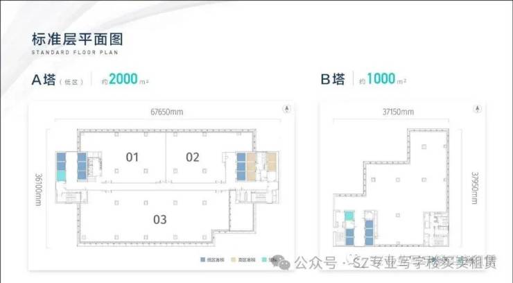 标准层面积:A塔约1900-2300㎡(使用率70%)