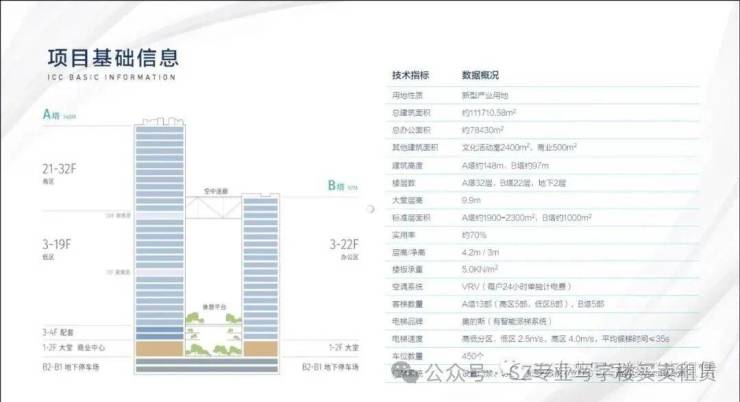 办公租赁楼层:A塔-低区3F-19F;高区21F-32F