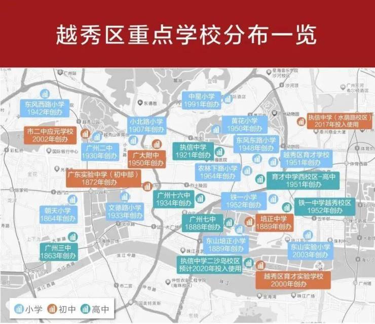 东风东路小学、文德路小学、广东实验中学、执信中学、广州市二中等百年名校,每年都是中高考高分“大户”,妥妥的学霸收割机。