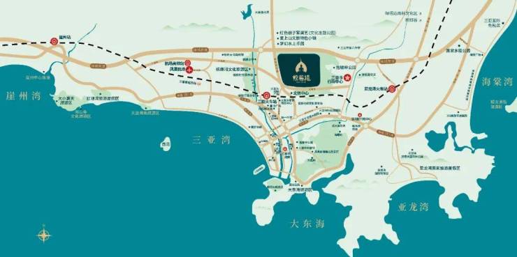 ②距离三亚动车站仅2公里,同时距三亚有轨电车始发站仅2公里;沿G98高速西行8公里,约10-15分钟即可到达三亚凤凰国际机场。