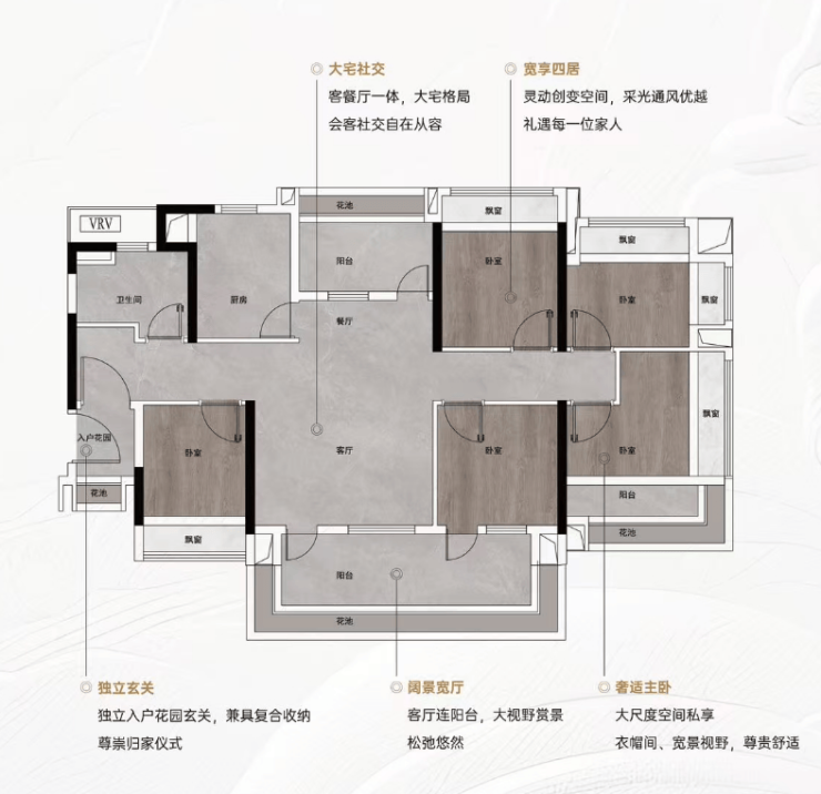 多元场景植入,丰盈体验感,营造出尊贵舒适的享受,市场独一份的极享生活模式。