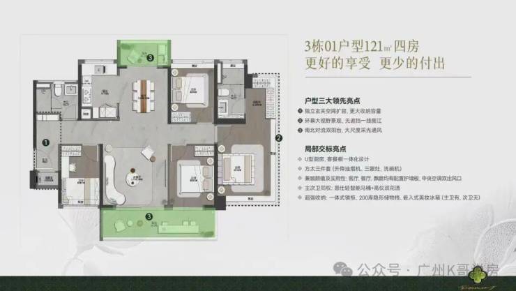 同样是南北对流的四房户型,做到了4.5开间朝南。