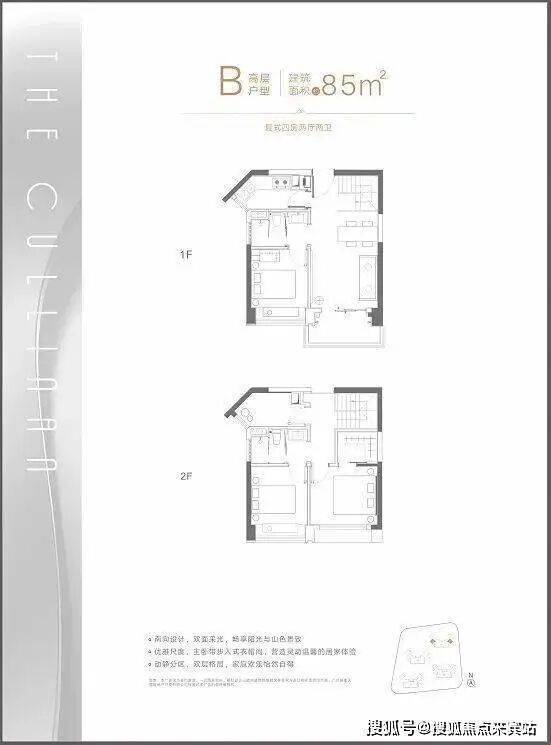 总建筑面积约10.6万㎡,设有4栋高层复式洋房,建面为85-120㎡,采用错式排布,全南向设计,通风采光俱佳,带精装交楼。