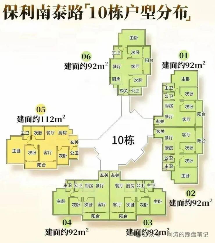 3.楼体形态为塔楼+板楼,板楼作为楼王。将会打造9栋住宅,采用塔楼为主+板楼结合的模式。其中,1栋、2栋和10栋为一层六户,5栋、3栋和7-9栋为一层五户,6栋为板楼设计。
