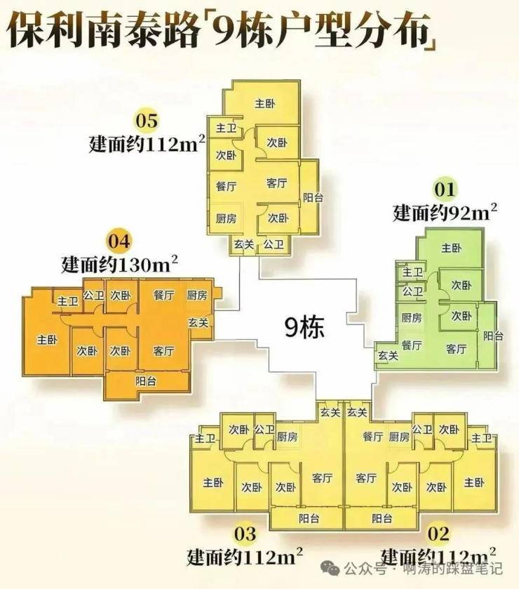 4.面积跨度会尽量做大,预计88-163平。三房两卫起步,主力户型是88-132平三至四房,做塔楼;会配置少量160-170平左右的大户型,做板楼。