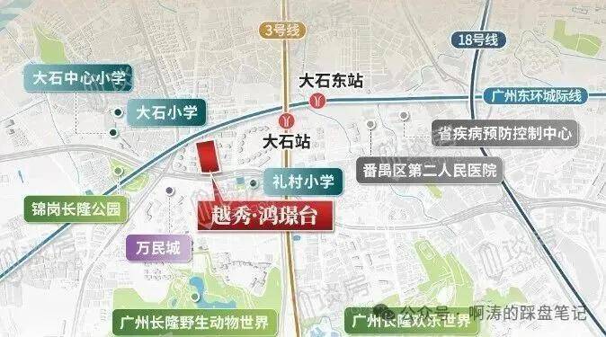 步行约500米至3号线大石站,1站汉溪长隆,6站直达珠江新城。广州城际大石东站,2站琶洲、3站金融城,与3号线双轨交汇。临近26号线群贤路站(规划中,首次环评已通过),5站客村,6站珠城,与3号线平行有效分流通勤,佛山4号线二期大石站(规划中,站点已初步规划)高效串联佛山、荔湾、海珠、番禺