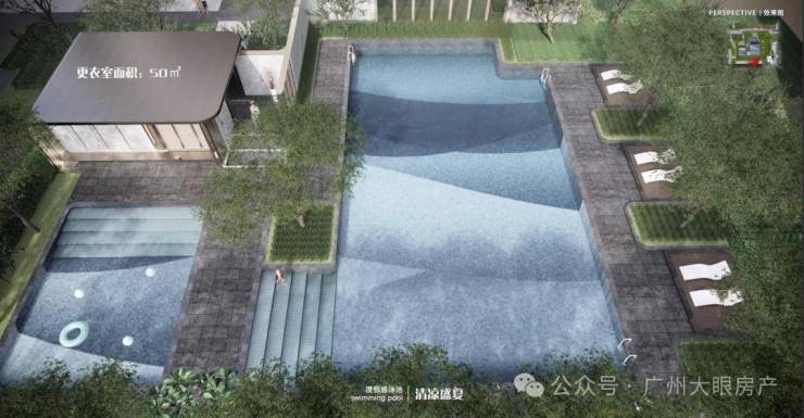 内部约360㎡成人泳池+约60㎡儿童泳池,设置独立更衣室,保障私密性同时兼顾功能性;增设休闲躺椅,提供多元社区休闲交流空间。