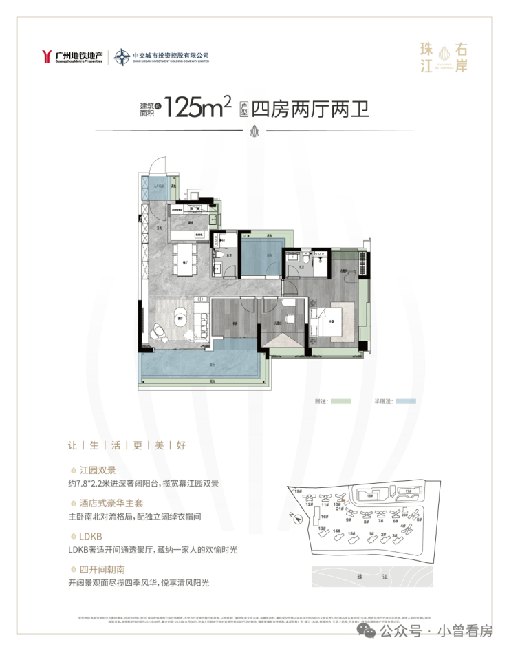 最小的建面约125平四房两卫,设计上也是颇花心思。