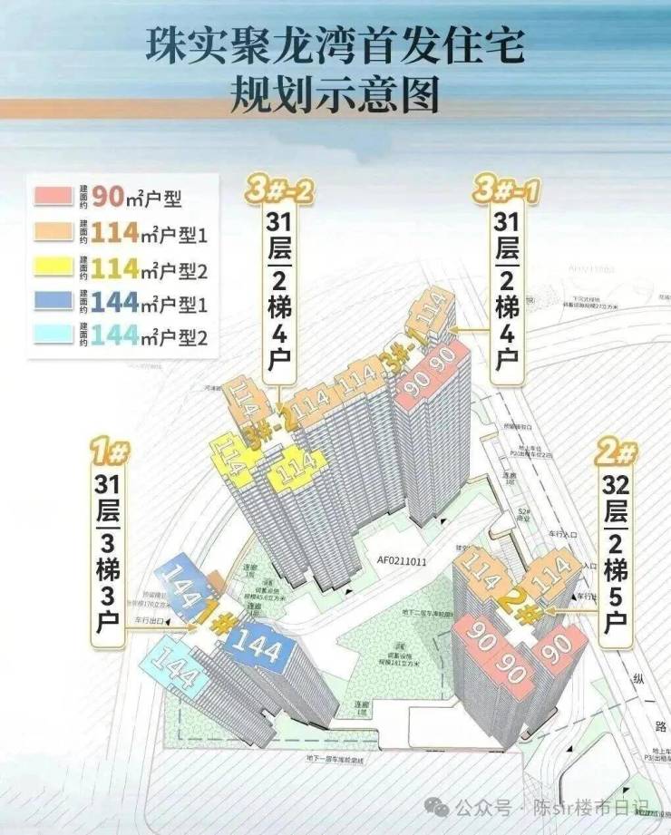4栋住宅,分别是#1、#2、#3-1、#3-2,楼层大概在31-32层,大概率都是两梯,可能将会是2T3、2T4、2T5,属性偏刚改。首推#2和3号#3-1