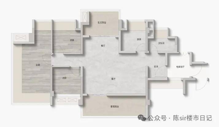 建面145㎡的4房3卫,这个户型是独体独户的楼王,阔绰双主套设计,南北对流双阳台,LDKG一体化,专梯入户,这个私密性非常高。