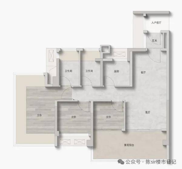 建面90㎡的3房2卫,全开间南向,LDK一体化,带大尺度入户收纳