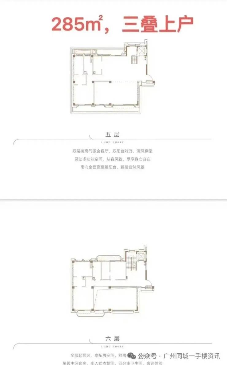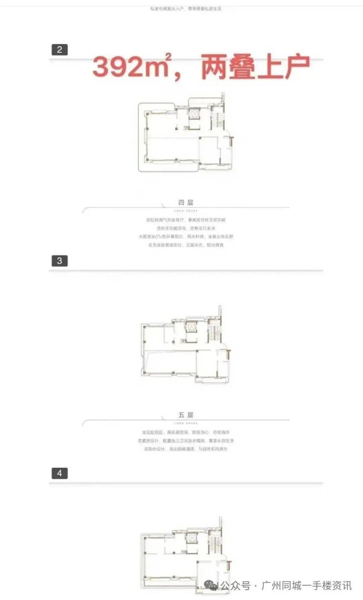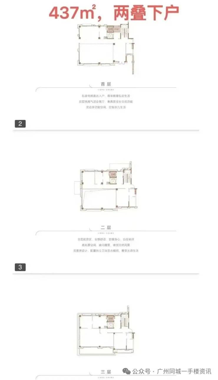 ●产品户型:两叠(上叠392㎡、下叠437㎡),三叠(上叠 285㎡、中叠279㎡、下叠305㎡)