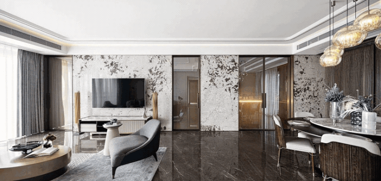 江幕大平层中,尽量留白,让视觉无限开阔,内外通透,也借此更为凸显品质奢宅的品质所选。