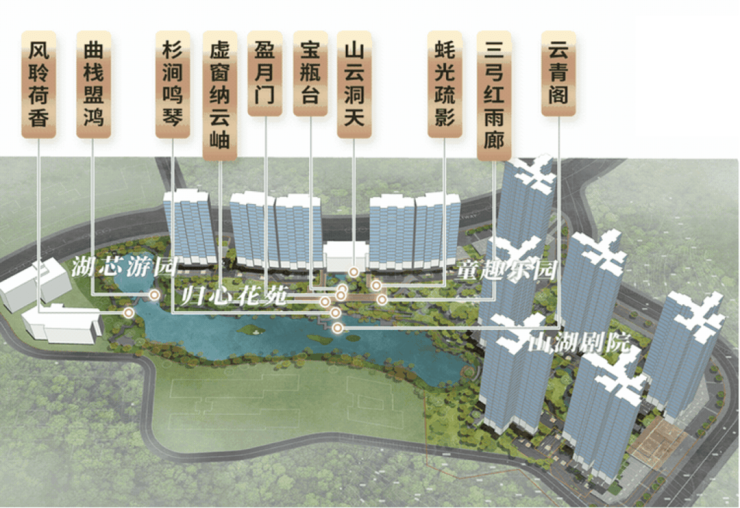项目汲取余荫山房造园理念,采用“缩龙成寸”的设计理念,以水居中,环水建园,打造了「辰园十景」。