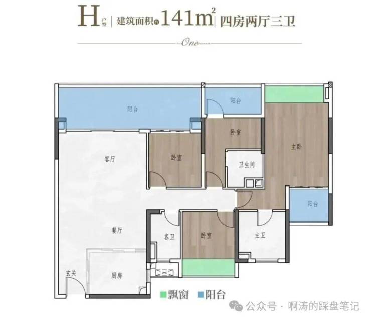 户型:涵盖75~141平方米的三至四房