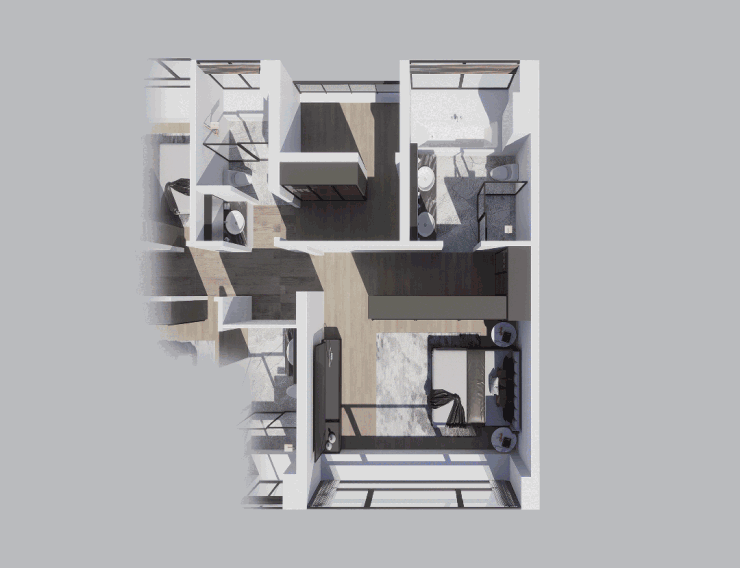 主卧侧重“小家化设计”,可承载的活动场景更充裕,方便布置化妆间,游戏空间,阅读角等多功能区,“足不出卧”也不成问题。