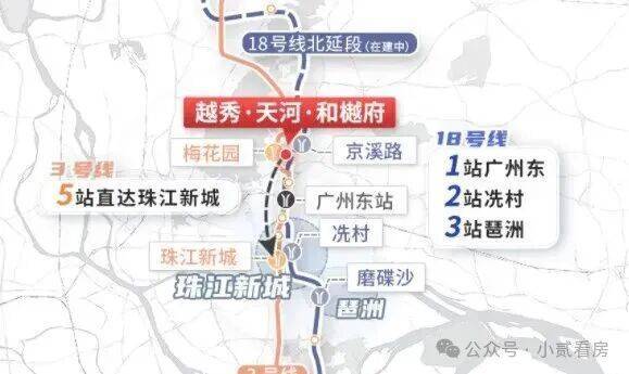 项目周边拥享广州两大重要地铁线路,距离地铁3号线梅花园站直线距离约400米,2 站到东站,直通广州火车东站,白云国际机场;距离地表最强地铁18号线北延段京溪路站(在建中)约850米,预计2026年开通后1站到东站,2站到冼村,3站到琶洲,畅享黄金轴线便捷生活。