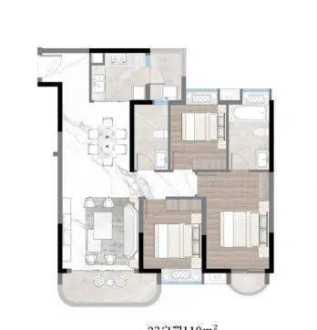 91-110㎡三房:三房两厅两卫带主套设计,四开间朝南,通风采光俱佳;主卧套间配备独立卫浴,私密性强,多功能空间可作为书房或儿童房,适配成长型家庭,使用率达 8 成,优于同价位部分项目。