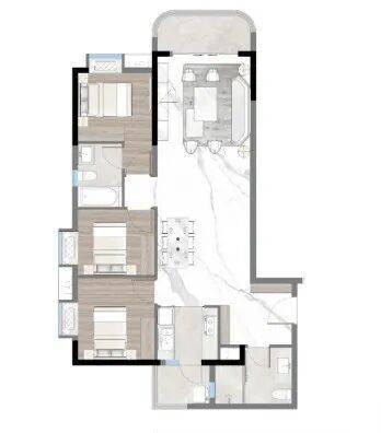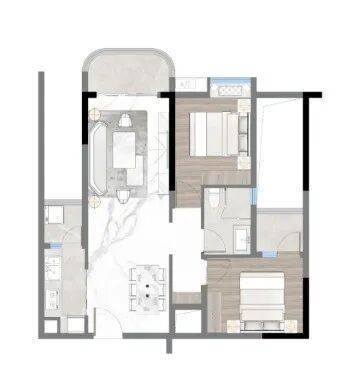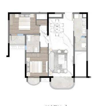 78-86㎡两房:布局紧凑合理,客厅连接观景空间,采光充足;主卧带飘窗,空间利用率高,适合新婚家庭或刚需人群。
