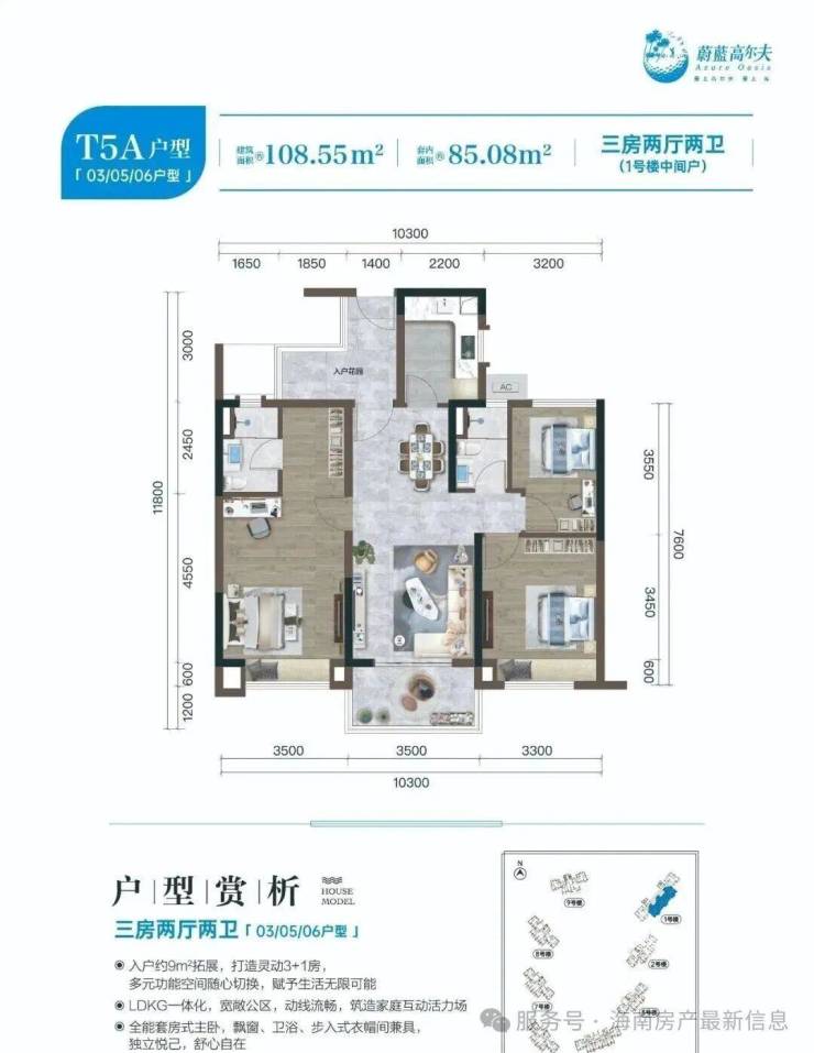 在海南清水湾这片藏着 “会唱歌的沙滩” 的天赋之地,蔚蓝高尔夫三期以 1.1 低容积率的墅质洋房、70 年产权现房优势