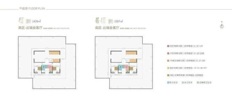 企业会客厅:38-44F:338-479㎡45-47F:1,427-1,596㎡(整层)