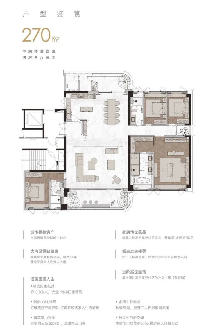 3. 270㎡四房三卫户型