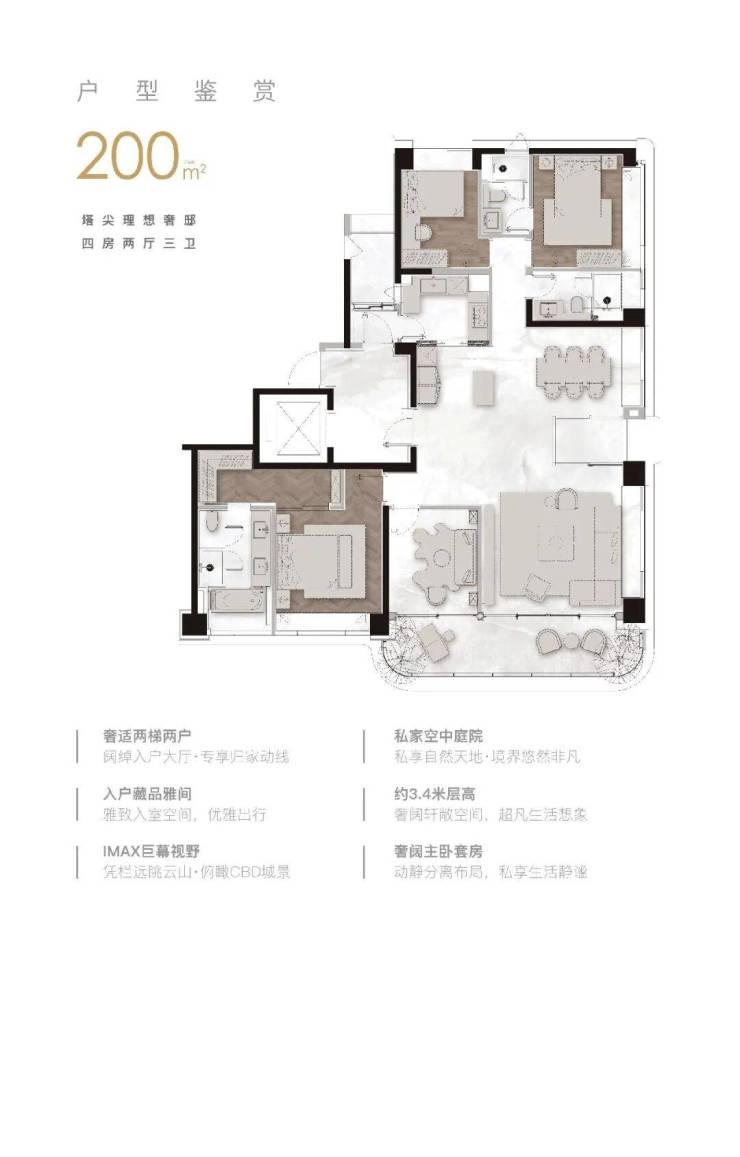 2. 200㎡四房三卫户型