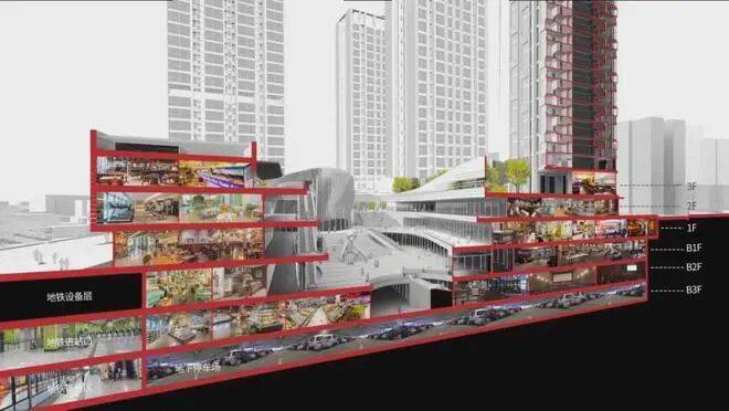 罕见开放式商业综合体,地下三层商业MALL接驳双地铁,地上三层公园购物街区。