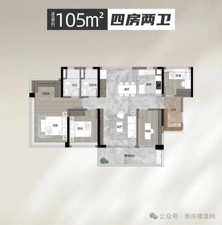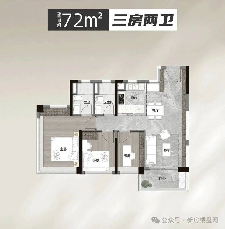 提供72 - 152㎡的多样户型,涵盖三至五房。户型全南向设计,采用现代化方厅布局,厨房、餐厅、客厅一体化。85㎡以上户型有超6米大阳台,152㎡户型一梯一户,南北通透。