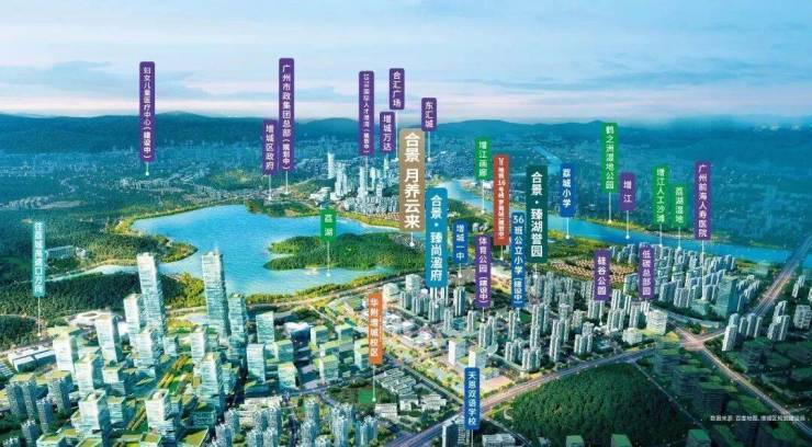 荔湖新城——东进之芯,擎动广州下个10年 增城地处粤港澳大湾区几何中心点,穗莞深惠四城交互中心点以及“广深港澳”科技创新走廊重要节点。在粤港澳大湾区时代,增城无疑是广州的“东进担当。”2020年,增城正式发布《关于荔湖新城城市设计方案的征集意见公告》,其明确指出荔湖新城的定位是增城新中轴,未来将发展成中央商务核心区!按照规划,这条中轴将以荔湖为中心,分为南北两区,包括1个核心区、7个功能组团,未来将成为集创新产业发展引擎、都市特色生态名片的湾区东岸现代新城。规划的中轴,由政文发展核心以及中央商务核心双引擎联动形成,向北联系增城老城区中心、向南对接增城火车站综合枢纽。合景月养云来以TOD引领的中央商务核心区,立足于荔湖新城主轴。