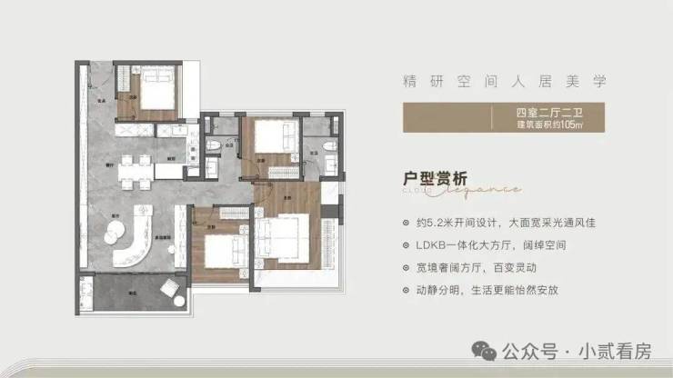 2. 105㎡ 四房二卫户型