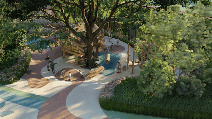 项目设计了三条动线,分别是:回家,休闲娱乐,还有一条非机动车,三条线尽量少交叉,让孩子们能愉快玩耍。